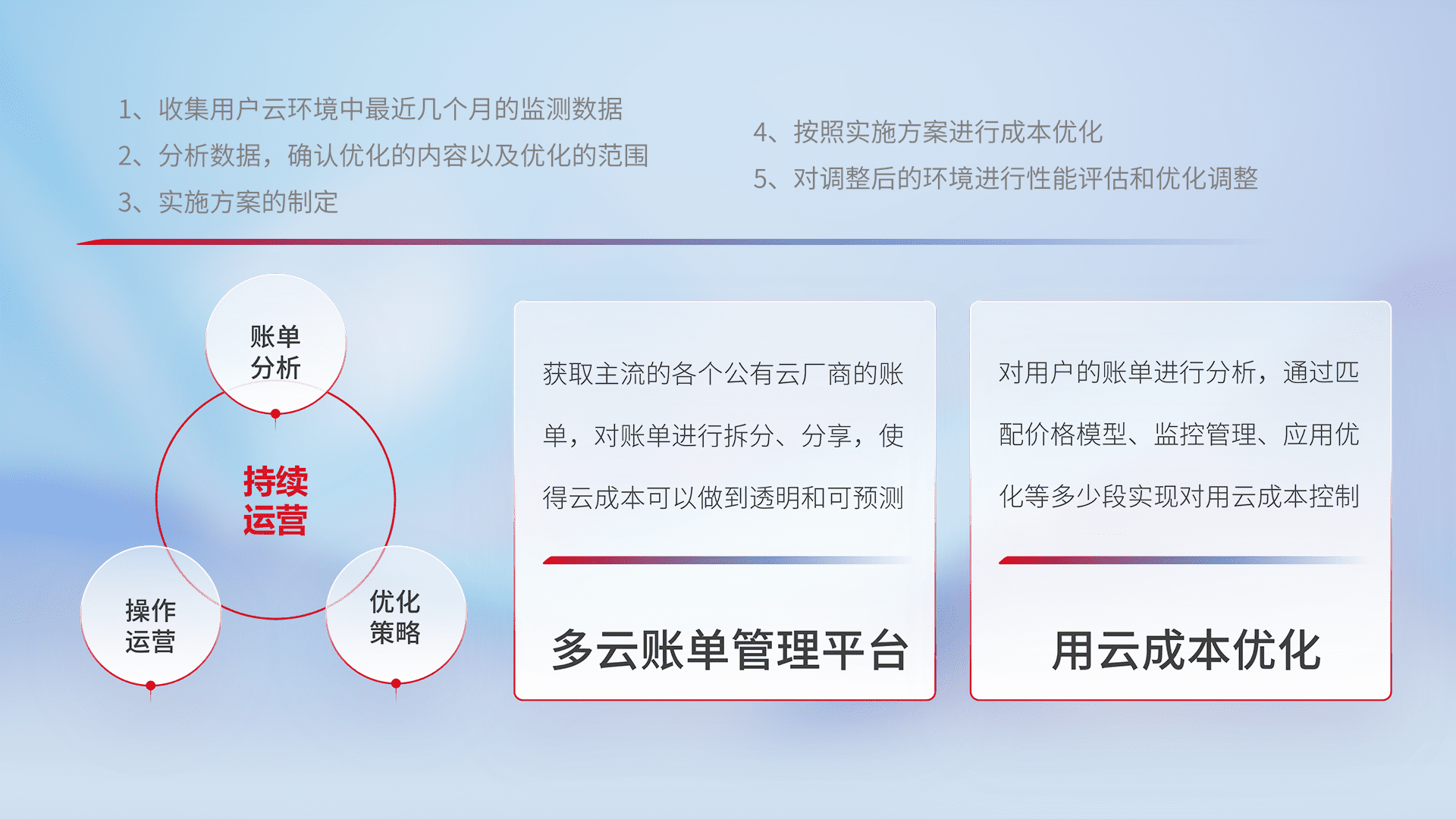 监控业务系统资源开销,,对资源的消耗精确计量,,,,实现费用的透明化管理,,,,不断提升资源使用率,,调整资源购买方式,,,,降低资源费用成本,,用云成本可预测、、、、用云费用可优化,,,,云资源配额有据可依。。。。
